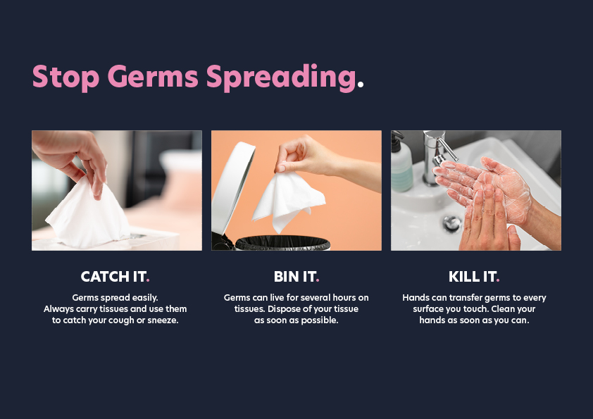 - Use signage to remind staff of good hygiene practices, including proper cough and sneeze etiquette and regular handwashing.